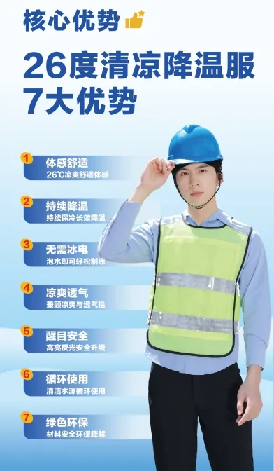 此次捐贈(zèng)的防暑降溫服,由沃克迪威聯(lián)合高校博士后科研團(tuán)隊(duì)共同研發(fā),運(yùn)用高分子材料置于馬甲內(nèi),無(wú)需冰與電,只需泡水10分鐘,穿著時(shí)能吸收人體多余熱量,維持?jǐn)?shù)小時(shí)的降溫效果,可以循環(huán)使用反復(fù)降溫,有效地為交警同志在高溫環(huán)境下工作提供舒適和保護(hù)。